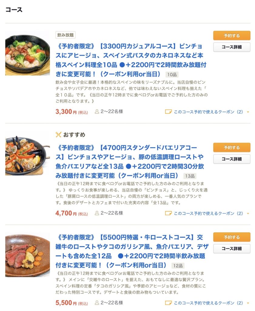 コースのご予約は食べログもしくはお電話からお願いします。